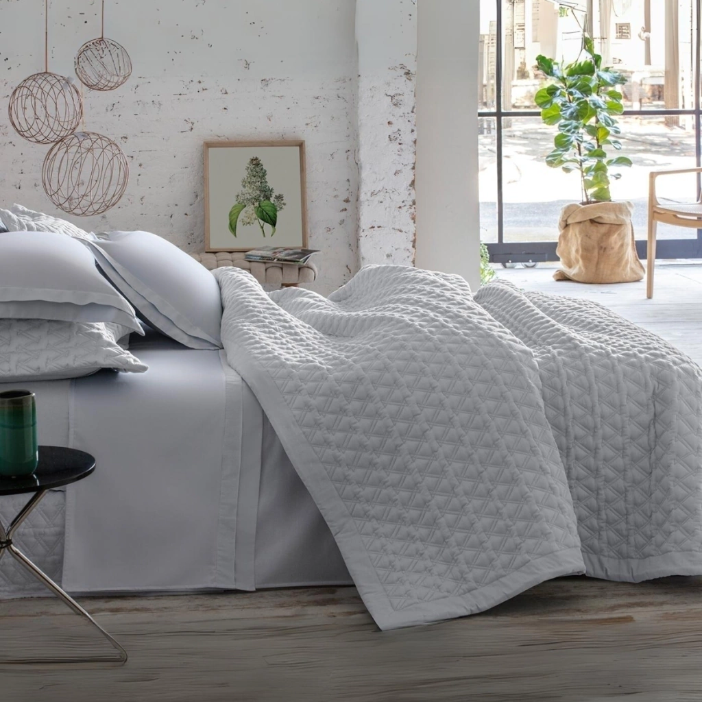 O Jogo de Lençol St. Germain é confeccionado em Tecido 100% Algodão com Cetim 300 Fios, proporcionando um toque extremamente suave e macio devido ao alto número de fios. Lençol de cima com dobra feita liso e detalhe color e aba dupla lisa, lençol de baixo com elástico liso na cor do detalhe do lençol superior e fronhas 3 abas com detalhe color e aba dupla lisa.