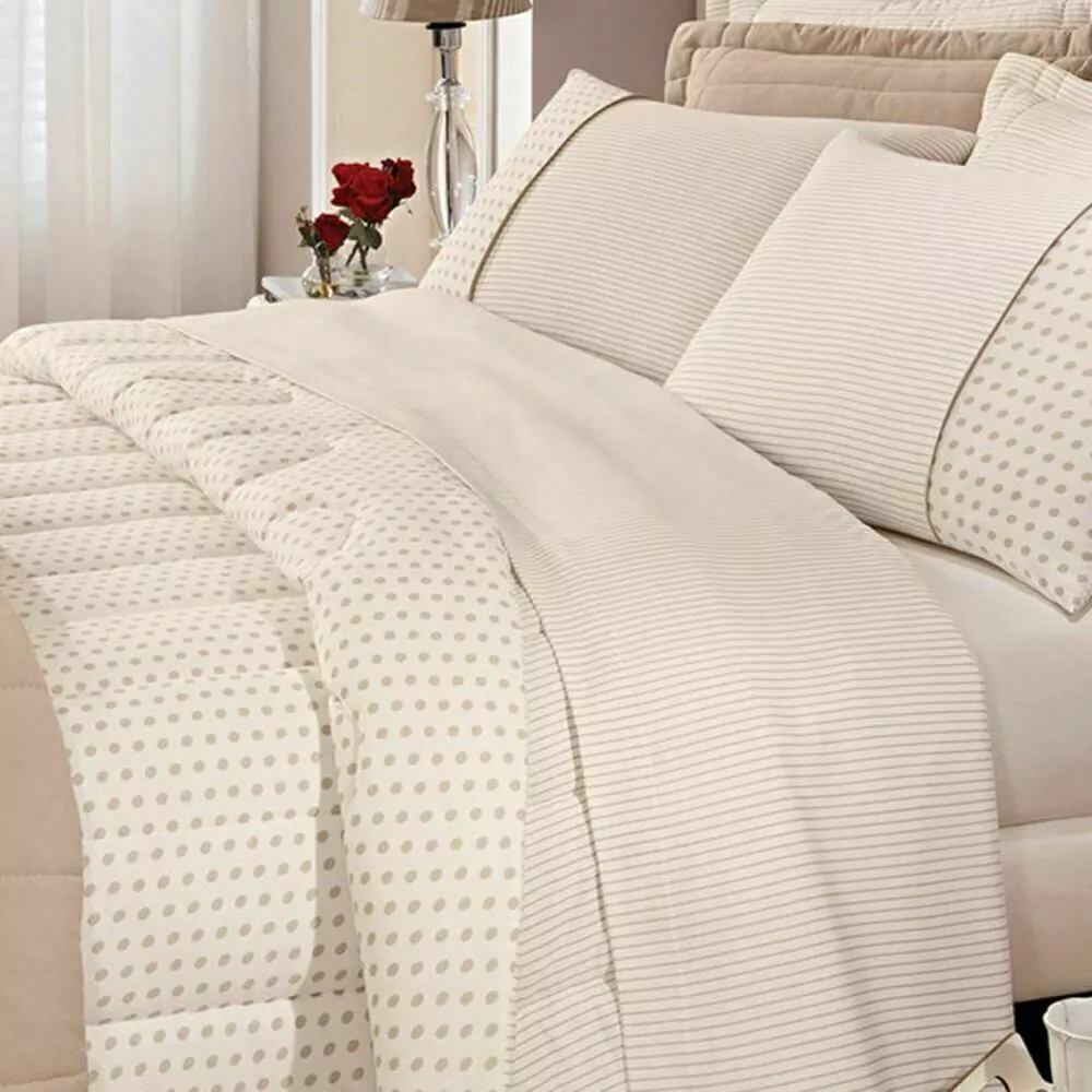 Popular desde a década de 1950, a estampa Poá é um carinho aos olhos, pois nos remete à organização, ao familiar, ao aconchego. Perfeita para todas as idades, foi produzida na cor cáqui, que facilita a combinação com outras estampas e cores, para deixar o ambiente ainda mais personalizado.