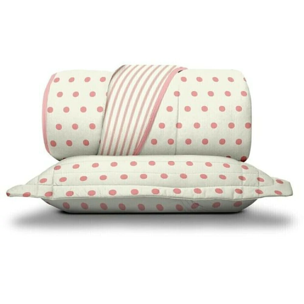 Cobre Leito Dupla Face, um lado com estampa poa e do outro estampa listrada.