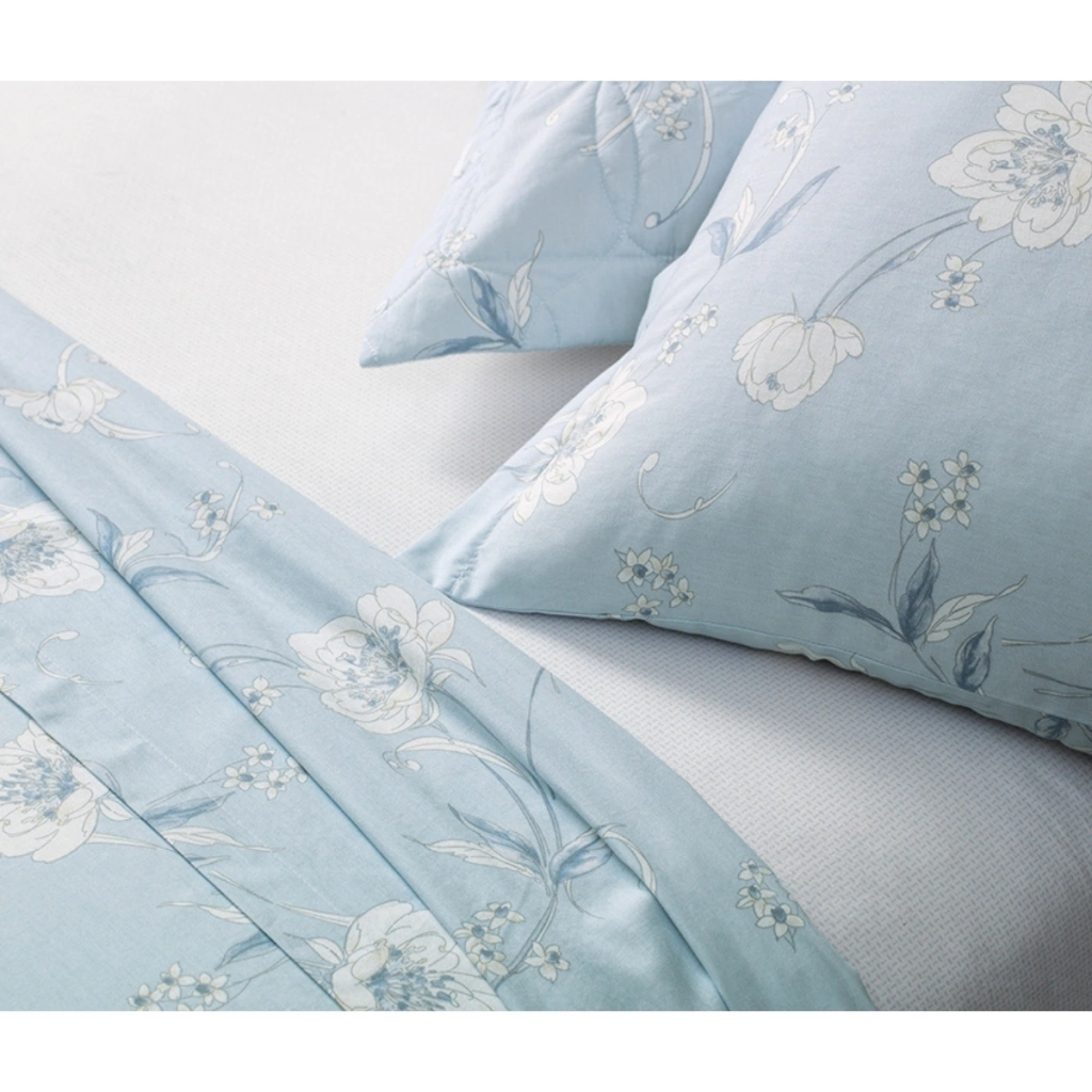 A estampa Floral Azul delicada adiciona frescor e elegância, com flores entrelaçadas de forma harmônica, conferindo à colcha um charme sutil que vai além da funcionalidade, tornando-a também uma peça decorativa. Detalhes cuidadosos permeiam todo o conjunto, incluindo o porta-travesseiro com 3 abas de 5cm, acrescentando um toque de sofisticação à sua arrumação.