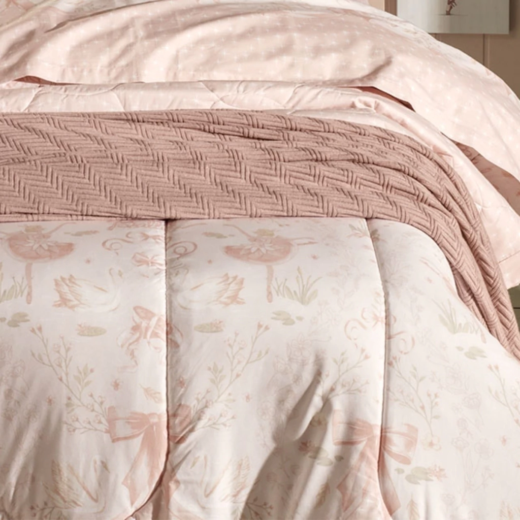 A Colcha Karsten 200 Fios 100% Algodão Encantada possui uma estampa delicada, com bailarinas e laços. Criando um ambiente totalmente aconchegante e feminino, inspirado no universo das princesas. Sua composição é 100% Algodão, conferindo toque suave, qualidade, beleza e encanto.